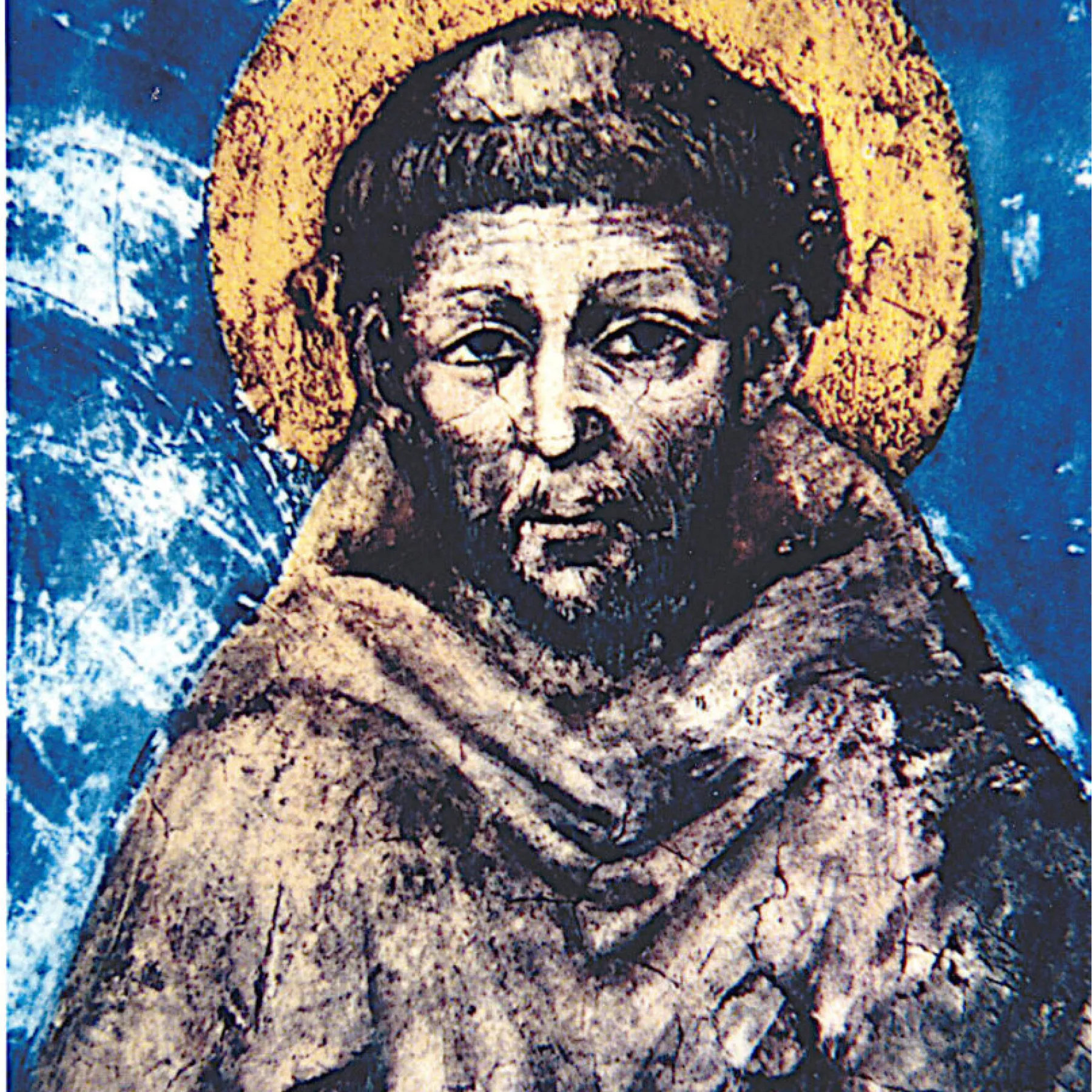 Réintégration picturale à »tratteggio » sur la manche de St François d’après les préconisations de Cesare Brandi pour une réintégration picturale déontologique, qui se distingue de l’original par la juxtaposition de traits de couleurs complémentaires afin de la repérer par une vue rapprochée et de la confondre par une vue d’ensemble.